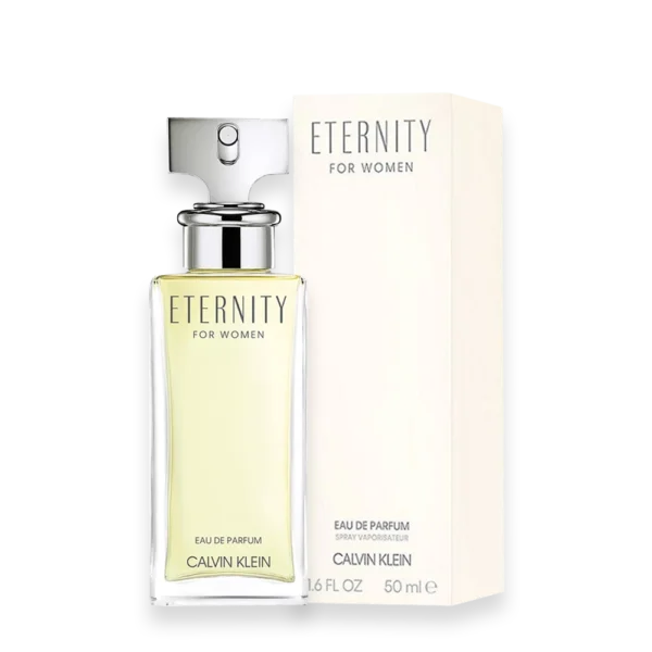 Eternity was launched in 1988. Luxurious. Romantic. Timeless. Inspired by a simple band of diamonds and the ideal of lasting love and intimacy, the floral scent is a harmonious blend of classic and contemporary style. A timeless and luxurious composition of flowers, citrus and soft woods, it holds the promise of lasting love. The signature scent of an all-out romantic, Eternity Eau de Parfum by Calvin Klein transitions beautifully from day to evening. A hymn to love, Eternity opens with notes of mandarin and freesia then delivers a bouquet of beautiful flowers: lily of the valley, violet and spicy carnation. Gentle sandalwood lingers in the dry down. Romantic down to the last detail, the bottle’s silver accents symbolize enduring affection, while the white and silver box evokes purity of heart.