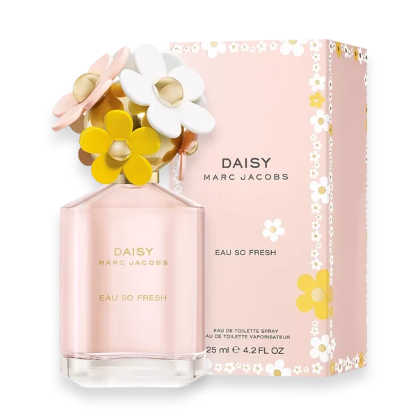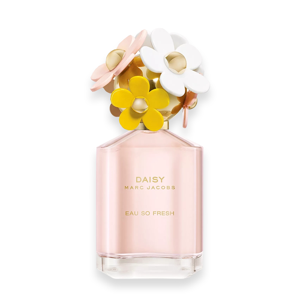 Daisy Eau So Fresh was launched in 2011 A spirited incarnation of the original Daisy, this fragrance excites the senses with a bright elegance and whimsical charm. Like the woman who wears it, Daisy Eau So Fresh inspires us to be bold and feminine, sweet and unpredictable. The scent’s enticing top notes of raspberry and grapefruit sparkle on the skin like sunshine, deepening into a sensuous heart of wild rose and a musky, sophisticated finish of warm plum and cedarwood. Master Perfumer Alberto Morillas, the creator of Daisy Marc Jacobs, also composed this radiant bouquet of fruits and flowers.