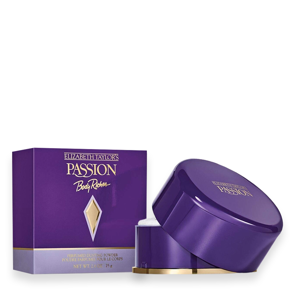 Passion Powder was launched by the design house of Elizabeth Taylor in 1989. Choose Passion body powder by Elizabeth Taylor as an after-bath luxury that will keep you dry and feeling confident all day long. Vanilla, moss, jasmine, and woody notes create a light feminine scent that will linger as you go about the day’s errands. Dust this fine powder all over before getting dressed, and add a spritz of Passion perfume as a finishing touch to your wardrobe. It’s light enough to use daily, yet exotic enough for an evening out.