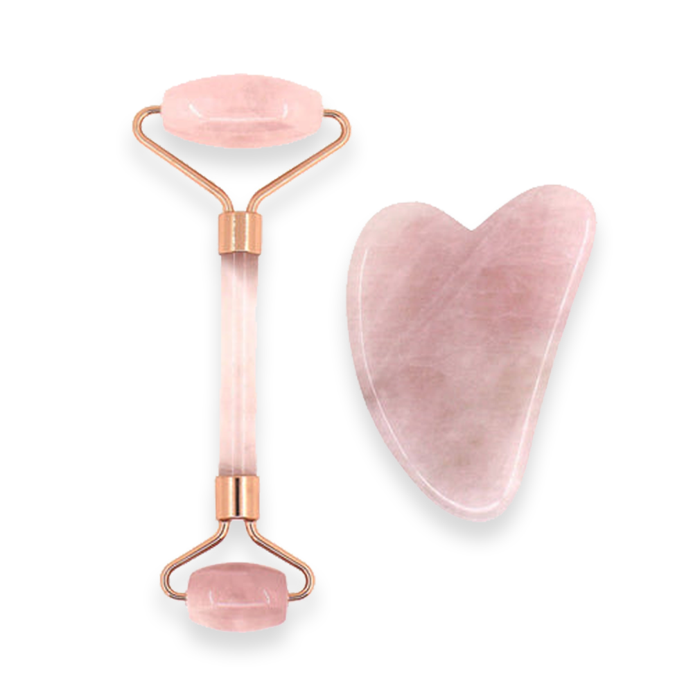 The Rose Quartz Roller and Gua Sha Facial Massage Stone provides a gentle, soothing massage and reduces the appearance of puffiness and redness. Gua Sha stones can be used to gently massage the face and aid in skin care product absorption.