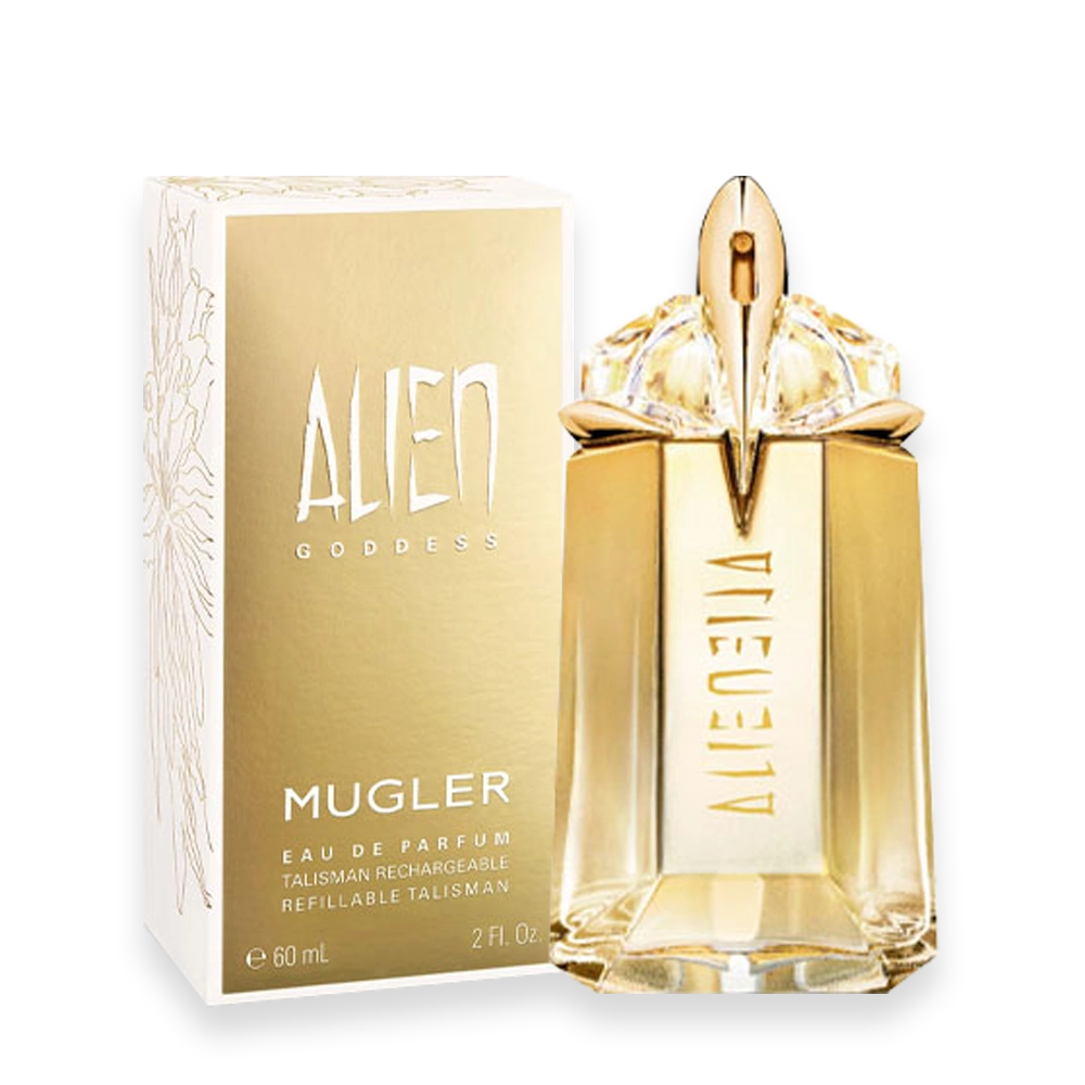 MUGLER Alien Goddess Eau de Parfum is a women’s perfume that pairs a divine base of vanilla perfume with jasmine from India overlaid by a burst of fresh Italian bergamot, creating a radiant floral bouquet of notes fit for a goddess.