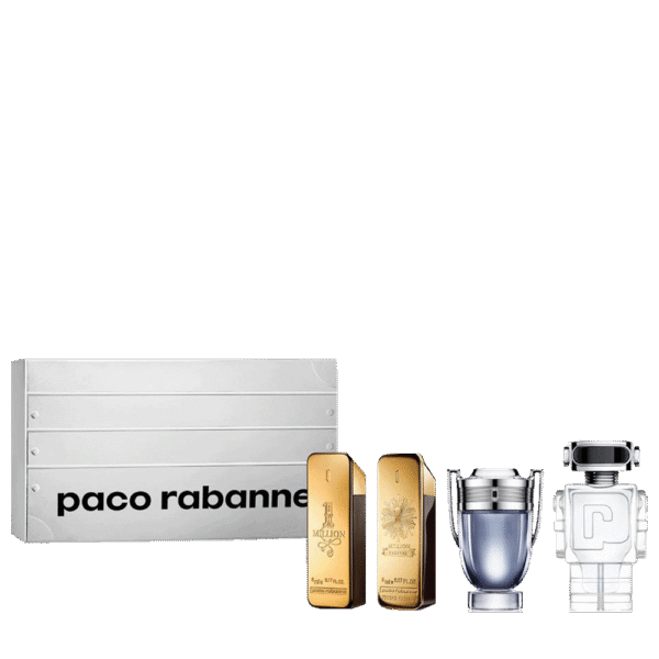 A daring journey through the Paco Rabanne special travel edition set. Enjoy a miniature 1 Million, 1 Million Parfum, Invictus and Phantom.